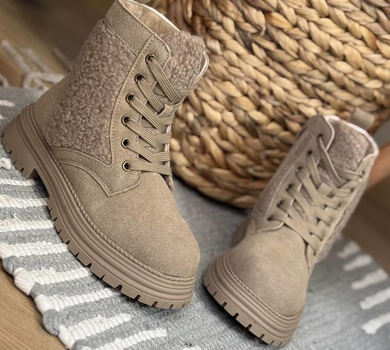 Ззовні еко замша та хутро (teddy) В середині натуральна овчина в комбінації із штучним хутором (60/40) Підошва не буде ковзати Боковий замочок для зручного взування Розміри в наявності: 32р. - 20,3 см 33р. - 21,0 см 34р. - 21,5 см 35р. - 22,3 см 36р. - 23,0 см 37р. - 23,5 см