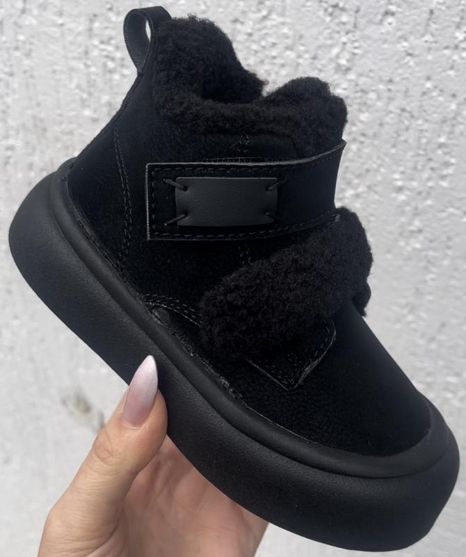 Верх якісна щільна замша з захисним носком Утеплені густим хутром (75% натуральний ) Застібка :блискавка і 2 ліпучки( регуліровка повноти ніжки) Підошва плотна , морозостійка, легенькі по вазі Устілка внутрі в см: 26-16,7 см 27-16,9 см 28-17,7 см 29-18 см 30-18,7 см