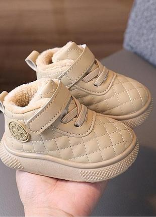 Детские ботинки для осени и зимы - легкость и тепло в каждом шаге Эко-кожа — надежная защита от влаги и ветра, позволяющая ножкам оставаться сухими и защищенными. Утеплитель из плюша - обеспечивает тепло даже в самые холодные дни. Резиновая подошва — с отличным сцеплением, что делает прогулки на скользких дорогах безопасными. Липучка – для легкого надевания и комфортной посадки. Модный дизайн – классический цвет и стильная вышивка, которая подойдет к любой одежде. РАЗМЕР 16 - стелька 12,5 см 17 - стелька 13 см 18 - стелька 13,5 см 19 - стелька 14 см 20 - стелька 14.3 см 22 - стелька 14,2 см 23 - стелька 14,8 см 24 - стелька 15,2 см 25 - стелька 15,8 см 26 - стелька 16,2 см