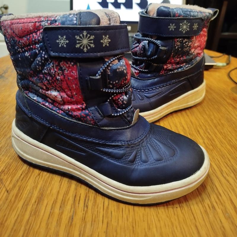 Да, это детские зимние термоботинки (сноубутсы) Lupilu. Характеристики и особенности Бренд и Тип: Обувь производства немецкого бренда Lupilu, известного своей качественной детской одеждой и обувью. Это сноубутсы, разработанные для холодной и влажной погоды, снега и слякоти. Материалы: Верх изготовлен из комбинированных водо- и ветронепроницаемых материалов. Внутри мягкий и теплый текстильный утеплитель, часто с дополнительным слоем термо-флиса. Термоизоляция: Стелька имеет алюминиевый слой для лучшей теплоизоляции, что помогает сохранить ножки ребенка в тепле. Подошва: Подошва профильная, не скользит. Некоторые модели, подобные изображенным, могут иметь светоотражающие элементы или даже встроенную подсветку, которая светится при ходьбе.
