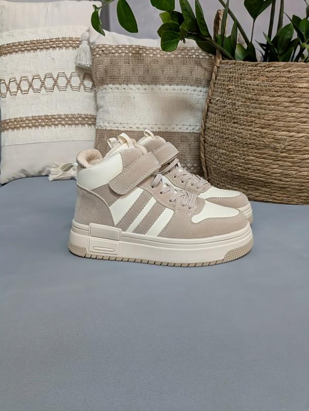 Стильная Зимняя новинка для девочек. Верх качественная экокожа. Внутри утеплены густым, теплым мехом, натуральная овчина 60%. Фиксация на липучку, шнурки - резинки. Сбоку есть замочек. Легкі. Размеры: 35р-22,3см