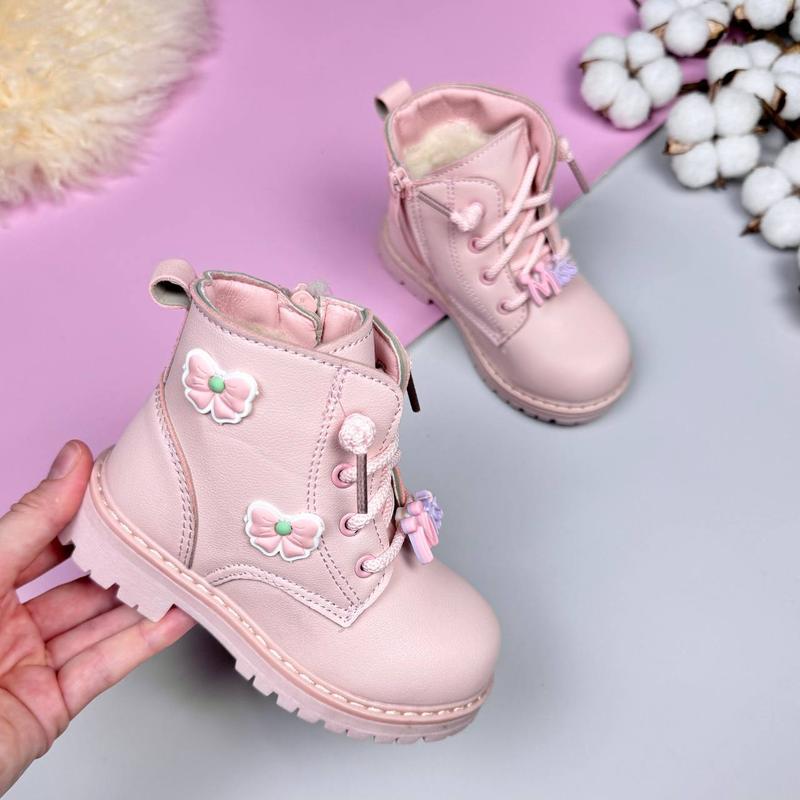 💕Ботиночки Miss розовые, зима. Утепленные овчиной. Верх - эко кожа. Застежка - замочек сбоку и шнуровка. Подошва - ПВХ. Стелька - овчина. 📐Замеры: 23 - 14,5 25 - 15,7 26 - 16,4 27 - 17 28 - 17,5 💰Цена 1075 грн Код 72
