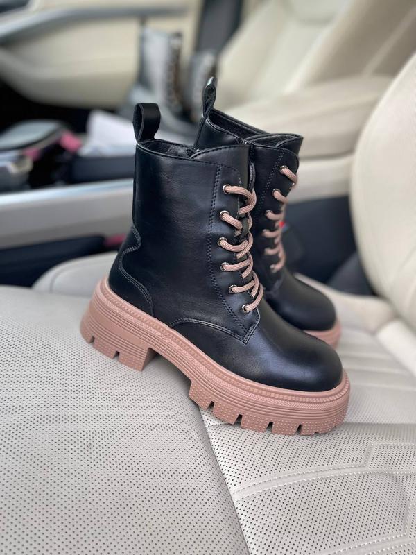Модные❄зимние ботинки на бежевой подошве 💫Новинка!! 👍Под дорогой образ Верх качественная экокожа Утеплены густой овчиной (75% натуральная ) Застежка :молния сбоку и шнуровка (регулировка полноты) Подошва плотная, морозостойкая, легкие по весу Плотна пʼяточка 💎Цена 1380 грн Код 120 Р.33-1п-21,5 см Р.34-1 п-22 см Р.35-2п-22,8 см Р.36-1п-23,3 см Р.36-1п-23,8 см