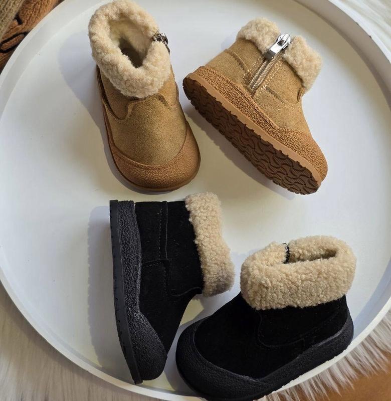 Верх - якісний замш, всередині штучне хутро. Застібка - блискавка. Гнучка підошва, захист на мисочок. Сезон: осінь, євро -зима. Гарна якість. ЗАМІРИ 16 - 12,5 см 17 - 13 см 18 - 13,5 см 19 - 14 см 22 - 14,5 см