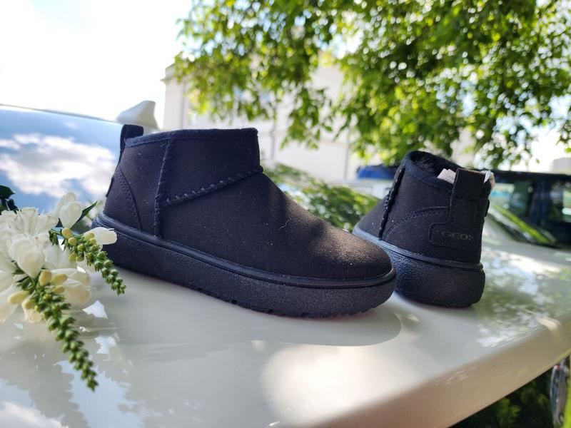 Новые теплые ботинки Geox Theleven. холодная осень- еврозима Оригинал из Англии Страна - производитель : Мьянма разм.27 Стелька разм.28 стелька 18см, ширина 6.3см Высота ботинка 8.5см Выполнены из искусственной замши. Цвет: черный. Легкие, коротенькие, гибкие, уютные и водонепроницаемые. Эта обувь идеальна для холодной осенней и весенней погоды, в также теплой зимой. Запатентованные системы Geox гарантируют воздухопроницаемость подошвы, одновременно с защитой от воды Технология Amphibiox делает верхнюю часть водонепроницаемой для превосходной защиты в любых погодных условиях. - утеплитель: искусственный мех. Температурный режим +8-8с - застежка: молния - Съемная стелька
