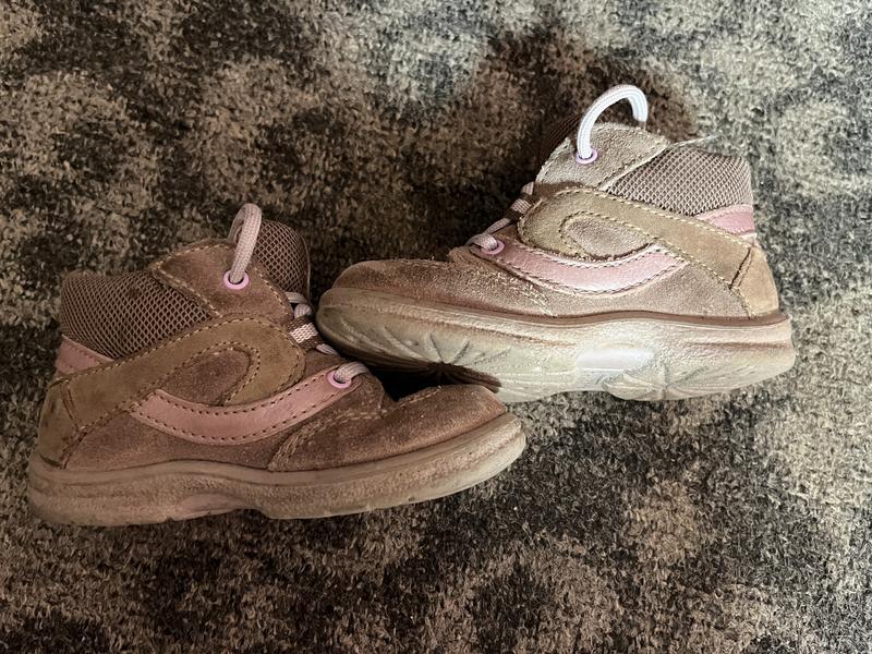 Шкіряні/ замшеві черевички . У гарному стані, на носику замш трішки потертий , в іншому дефекті нема. Із середини все ціле. Гарно тримає дитячу ніжку. Легко одягаються. Розмір 22 Устілка 14 см