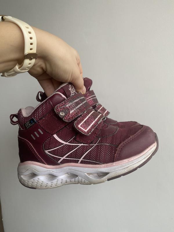 Зручні черевики на липучках для дівчинки Світиться один черевик . Замір устілки на фото