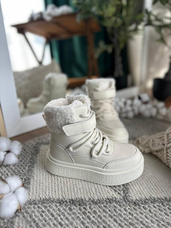❄️Невероятно красивая и стильная зимняя тёплая моделька бочонок для ваших красавиц🌸 Всеми любимая ТМ Clibbe!качество 🔥 Изготовлены из качественной мягенькой экокожи.Срединка утеплена овчинкой 60%,штучный мех -40 %. Фиксируются липучкой и боковым замком. Размеры: 33-21,2см 35-22,5см 36-23,2 см 37-24,0 см 🛍️ цена 1430 грн