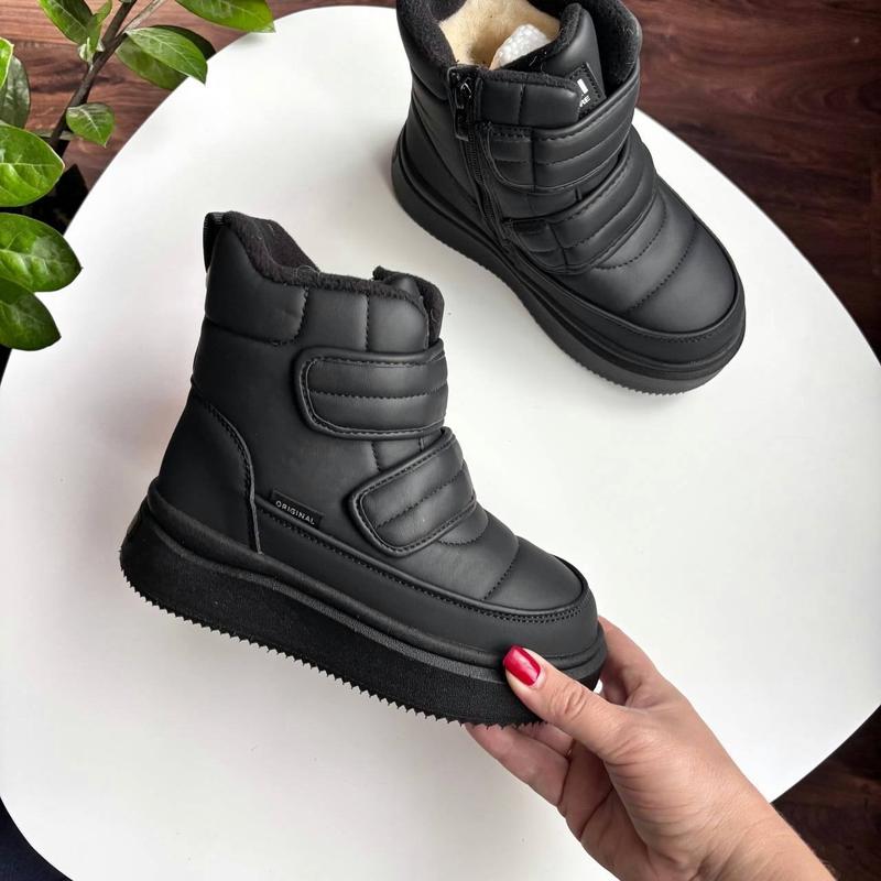 Неймовірної краси чобітки від BI&KI (Том.М ) верх водонепроникний , якісна еко шкіра Застібка двома липучками , висока підошва, стильний дизайн Всередині густе тепле хутро ( натуральна овчина 60%). Дуже легенькі Пакунок школяра 34 розмір 21.7 см 34 розмір 21.7 см 35 розмір 22.3 см 36 розмір 23 см