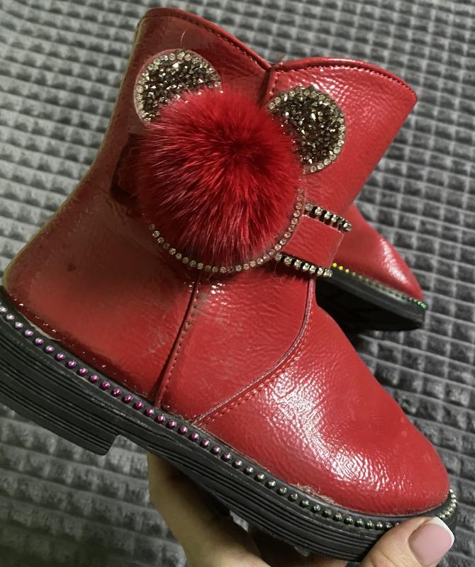 Гарні червоні лакові черевики з штучної шкіри, збоку з камінцями і хутром на розмір 34, по стільці 22. В гарному стані, без дефектів, підійде і на повну ніжку, збоку на змійці.