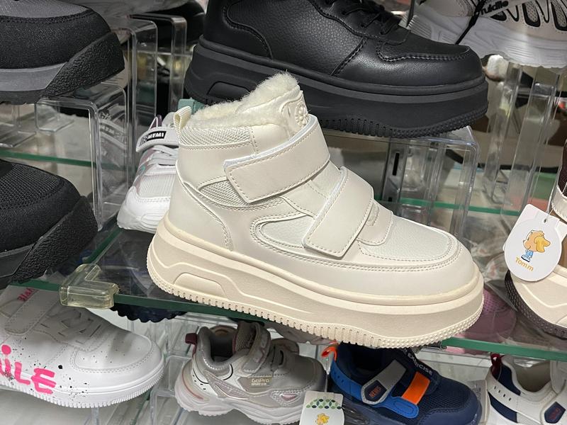 Мега стильна новинка тм Том.М Верх качественная эко кожа Фиксация двумя липучками Внутри густой теплый мех (натуральная овчина 60%). цвет молочный 35 размер 22,7 см . Оплата при получении новой почты (накладной платеж с подпиской 300грr); или полная оплата, укр почта- полная оплата Для оформления заказа напишите мне в смс свой адрес. Заказы через кнопку купить принимаю только с пометкой (полная оплата продавца на карту)