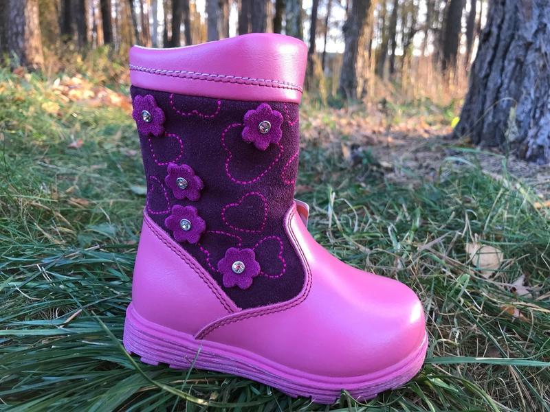 Зимние кожаные ботинки Фламинго внутри шерсть, сбоку молния 22 размер- 14,5 см стелька