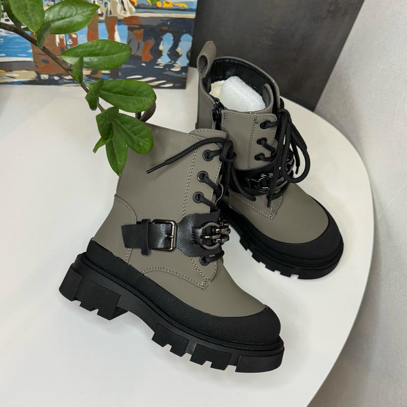 Стильные зимние ботинки для девочек Верх качественная эко кожа. Внутри густой теплый мех ( натуральна овчина 60%) Сбоку есть замочек. 27p.- 17,6 см 28p.-18,4 cм 29р.-19,0 см 29р.-19,0 см 32р-21 см кам