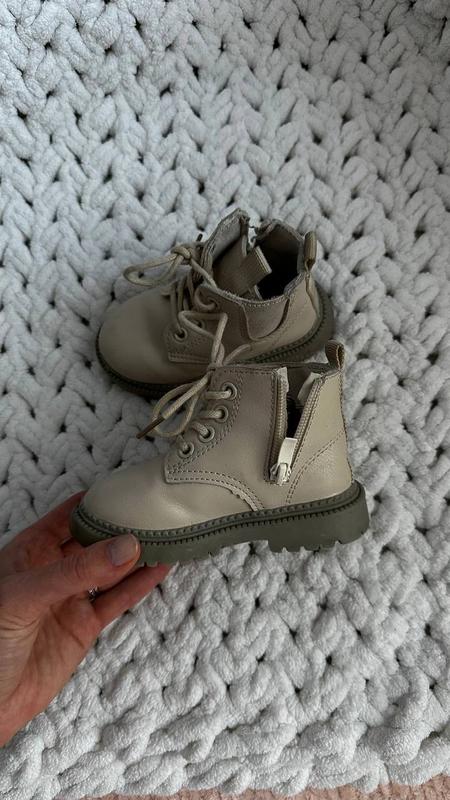 Дитячі ботікі, бежевого кольору, розмір 21-22 Стелька 13 см Мають шнурівки та замочок