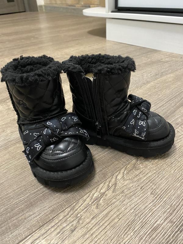 Зимове взуття на дівчинку Розмір - 23 З якісної еко-шкіри на штучному хутрі Застібка - змійка Заміри по устілці - 14,5 см Заміри зроблені вручну, можлива похибка