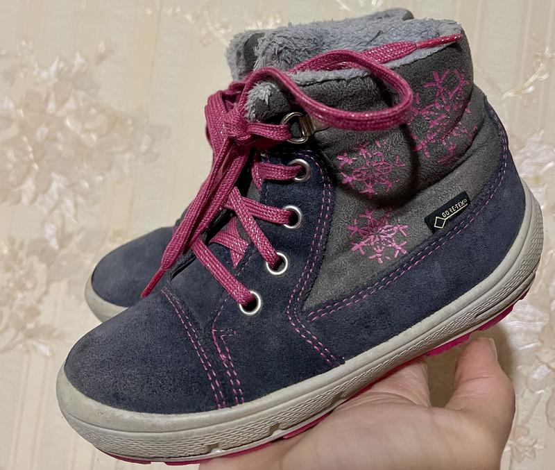 Черевики замшеві для дівчинки. Колір сірий, розмір 27 ; устілка 17.5 см . Стан ідеальний.