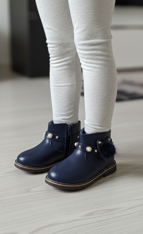 Состояние: Питательные, в отличном состоянии. Сезон: Демисезон (весна/осень). Цвет: Насыщенный синий/темно-синий (Navy). Размер: 25. По стельке: 15 см Материал: Эко кожа (сверху), внутри утеплены мягким флисом/текстилем. Застежка: Боковая молния для удобства обувания. Декор: Стильный ремешок с золотистыми заклепками и жемчужинными вставками. Милый пушистый синий помпон сбоку. На подошве рельефный рисунок "Принцесса на месяцы" и звездочки. Особенности: Очень красивые и нарядные: Отлично подойдут под платье или джинсы, привлекут внимание маленькой модницы. Удобные: Мягкая внутренняя отделка обеспечит комфорт ножкам. Практичные: легко чистятся благодаря материалу верха. Идеальный вариант для стильной прогулки в прохладную погоду!