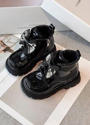 Стильні демі черевички Осінь 2025 Неймовірний дизайн 😍! Верх -екошкіра(лак ) Бантик можна зняти Всередині на плюші Легенькі та зручні Дуже стильні !Підійдуть під безліч образів ! 25р - 15.3 см 2 шт беж 26р - 15.7 см 1 шт беж 30р - 18.0 см 1 шт чорні 31р - 18.5 см 1 шт чорні Замір взуття всередині Ціна 885 грн Код 102