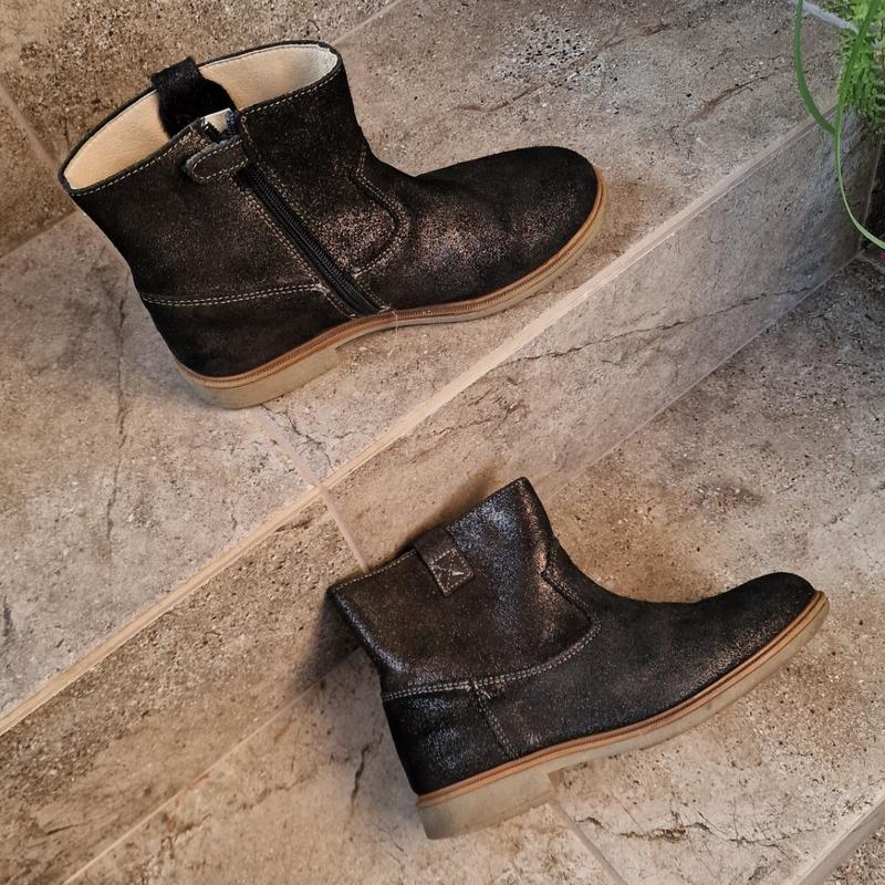 ботинки для девочки, темно шоколадного ( трендового), почти черного цвета, имеют в себе типа напыления, такой дизайн, кожаные, удобно что на замочке, состояние отличный 36р.