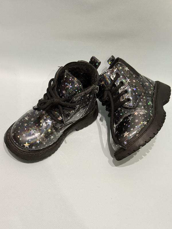 Ботинки для дівчинки, устілка 15,5 см Утеплені хутром ,але воно не дуже набите ,тому прекрасно підійде на холодну осінь чи теплу зиму .Ботиночки з дефектом ( на фото показала) , в них як верхній шар покриття начебто місцями відійшов ,але при носці цього взагалі не видно. Ціна символічна ,можливо кому підійдуть на прогулянок біля дому чи дачі