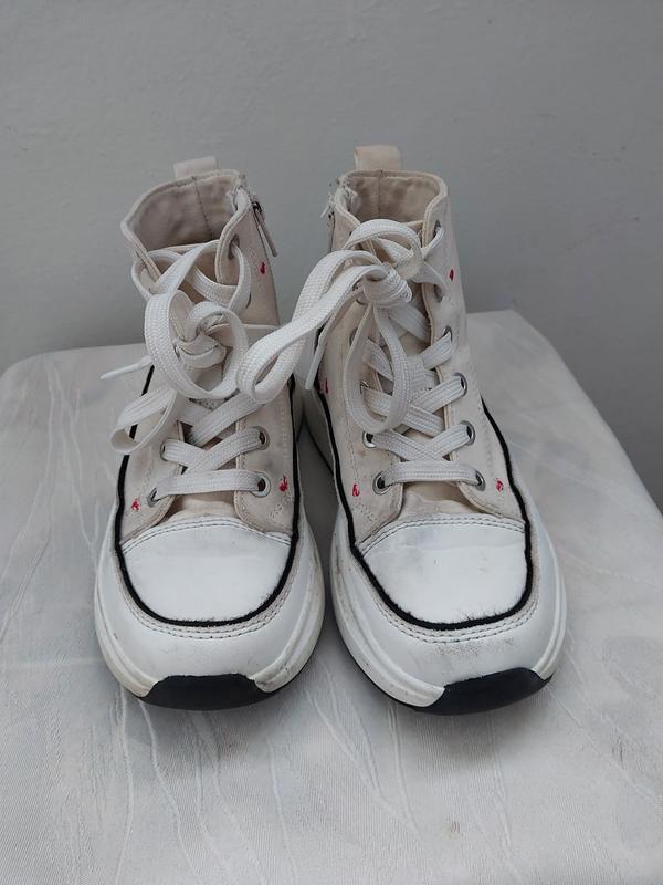 Деми Ботиночки на девочку. По стельке 20,5 см, стелька не вынимается. Высота полностью (замеры сзади) 13,5 см. Есть небольшие черные полосы на подошве, на ношение не влияет.