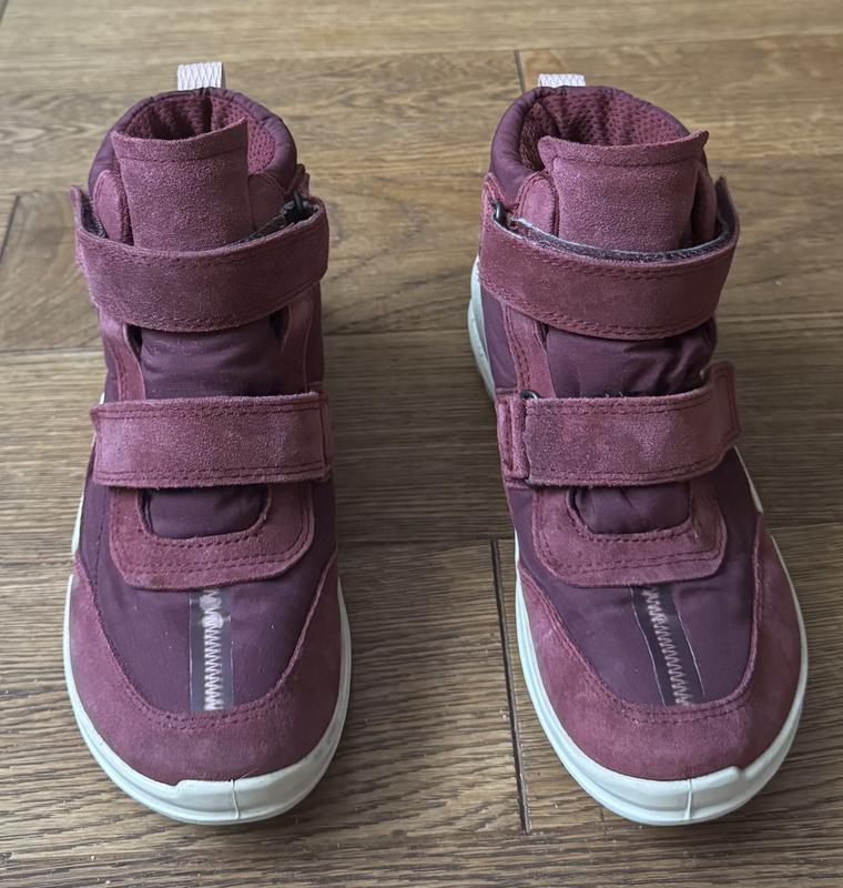 Дитячі черевики ЕССО з мембраною GORE-TEX є ідеальним вибором для зимових днів, забезпечуючи 100% захист від води. Дві застібки на липучці можна відрегулювати для надійної посадки. Мʼяка тепла підкладка зігріє дитячі ноги навіть у найхолоднішу погоду. Деталі: • Комбінований верх з текстилю та замші • Водонепроникна мембрана GORE-TEX • Дві застібки на липучках • Зручна підошва забезпечує надійне зчеплення. Розмір 32, устілка вовна на фользі, від краю до краю 21 см. В гарному стані.