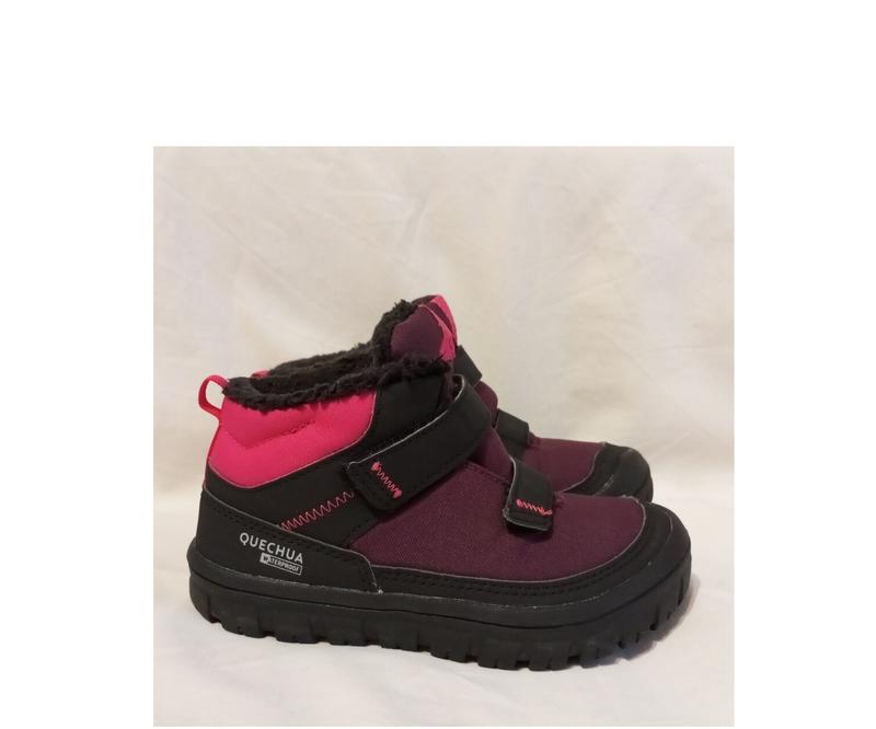 Теплые ботинки Quechua waterproof на мембране. Подкладка из плотного флиса. Не промокают, дышащие. Нескользящая подошва, отличное сцепление. Очень легкие и красивые. Комфортная температура: от +9 до -4°C Предельная температура: -8°C. Размер 29. Стелька 18,5 см. Состояние отличное, без дефектов.