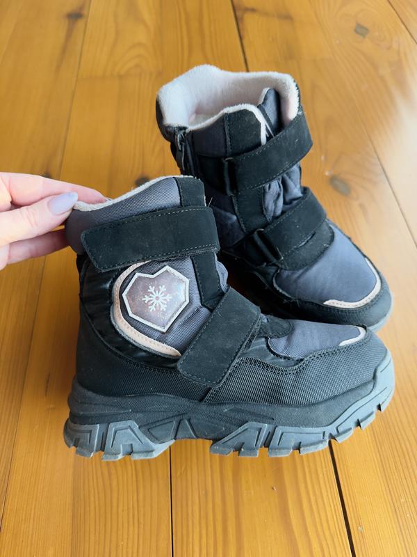 Зимові термо черевики на липучках та блискавіці на підошві з льодоступами.