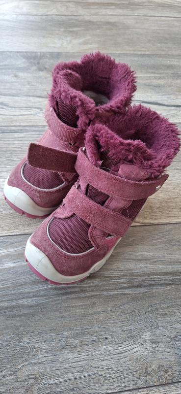 Отличные сапожки, оригиналы, в идеальном состоянии, купованные в Германии. Теплая, нога не промерзает, липучки, пятка- все идеально. Не стирались, в багнюке не были, замш не затертый. Цвет ярче, чем на фото.Дитина носила в садик, а ребенка несли туда на руках) Стелька 16 см