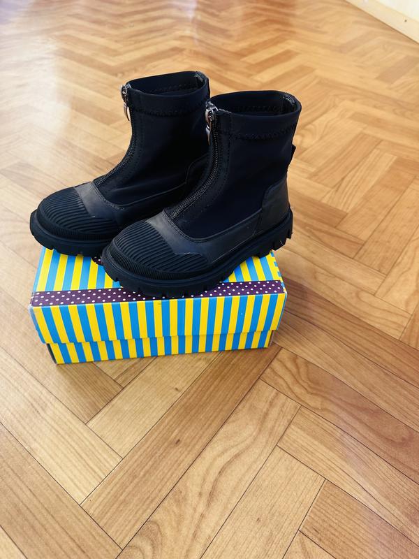 Чорні дуже гарні черевички челсі. Стан дуже чудовий, взували лише на вихід. Носочок прорезинений, потім частина із нубука та сам чулок.