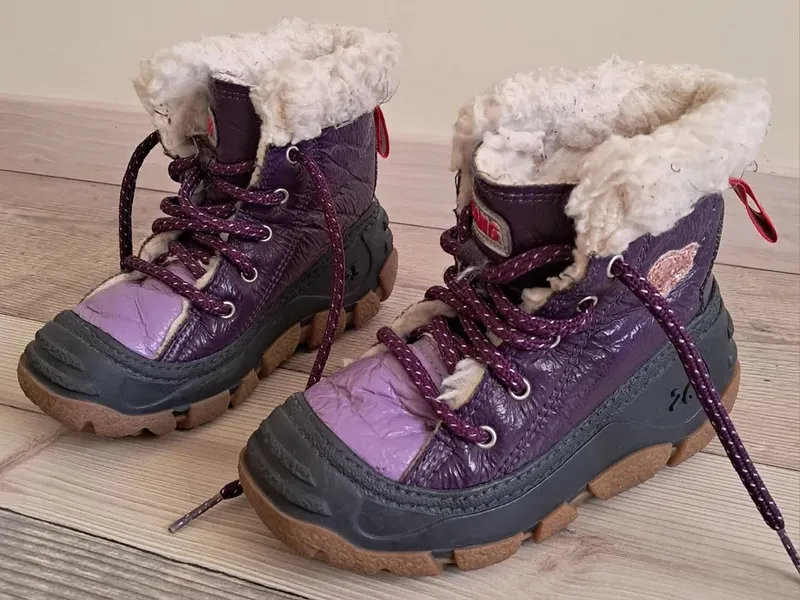 Сапоги зимние, утепленные, очень удобные, не скользящие. На шнуровке. Состояние- очень хорошее. Материал: экокожа, текстиль, мех. Носок защищен резиной. Рифленая подошва. Стелька меховая, вымывается -17 см. Размер 25. Полностью соответствуют фото!
