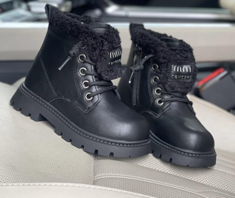Верх якісна плотна екошкіра Утеплені густим хутром (75% натуральний ) Застібка :блискавка і шнурівка( регуліровка повноти ніжки) Підошва плотна , морозостійка, легенькі по вазі Устілка внутрі в см: Р.22-14 см Р.23-14,5 см Р.24-15 см Р.25-15,5 см Р.29-18 см