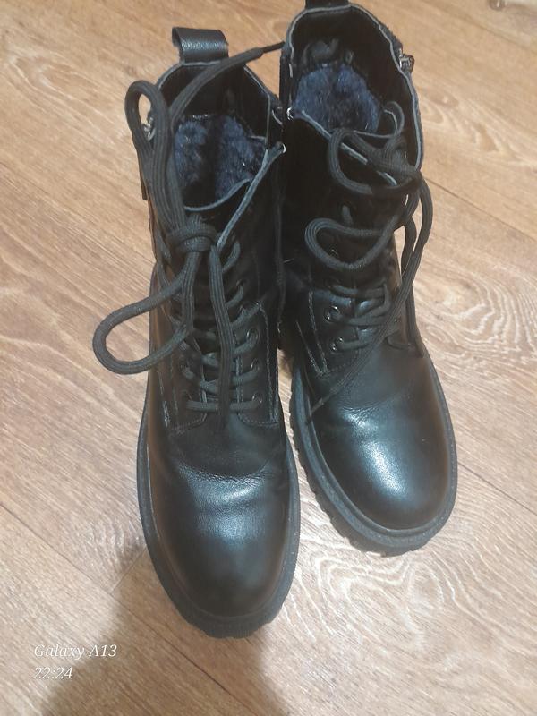 Сапоги ботинки зима, натуральная кожа, внутри искусственный мех. Стелька 23 см. Обувь 4-5 раз. Сзади подошва 5см высотой, спереди 3 см