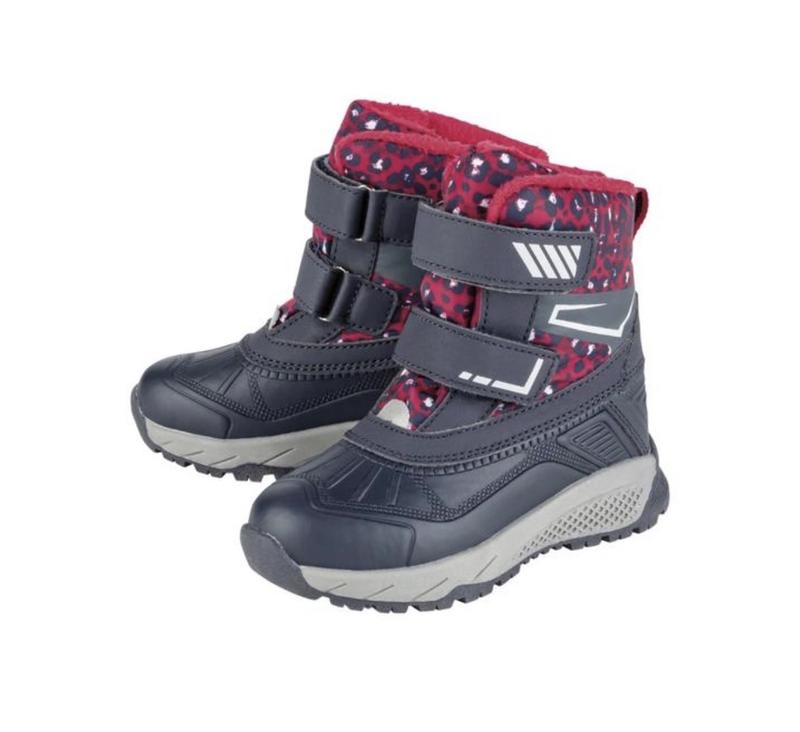 LUPILU Зимові чоботи для дівчаток Зручний та міцний Підкладка з м'якого, теплого текстилю Вони ідеально сидять і мають оптимальну фіксацію завдяки застібкам-липучкам. Зі світловідбиваючою обробкою з матеріалу 3M Scotchlite™ Знімна клейка устілка з алюмінієвим шаром для оптимальної теплоізоляції Вони відштовхують воду Лита підошва з TPR Заміри устілки ( виймається) ❌ 25 - 16,5см ❌ 26 - 17,2см ❌ 27 - 18см ✅ 28 - 18,5см ✅ 28 ✅ 29 - 19,2см ✅ 30 - 20см