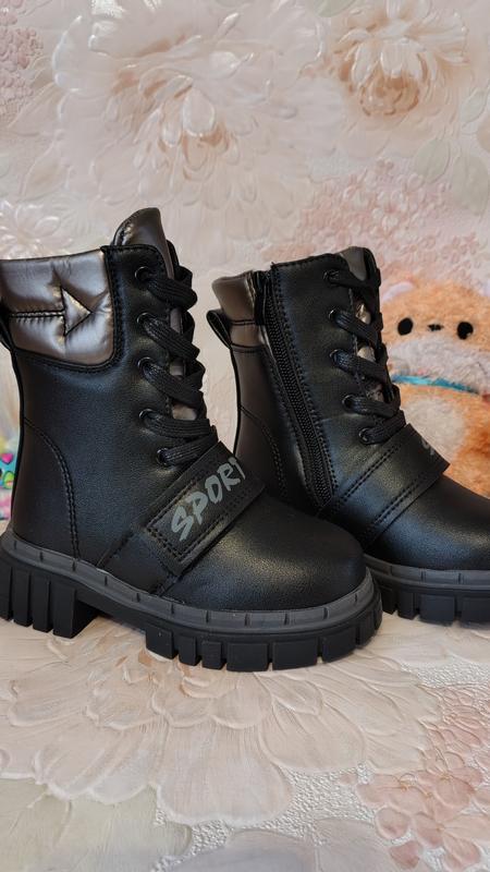 Очень красивые детские ботинки. Изготовлены из экокожи, экомеха, резина. Теплі, на зиму. Имеют шнуровку и молнию. Высокая подошва, пятка 4 см, подошва 2 см. Стелька вынимается. Замеры осуществлении собственноручно могут иметь погрешность. Замеры выполнены по стельке. Размеры: 26 - 16,2 см 27 - 17 см 28 - 17,8 см 29 - 18,3 см 30 - 19 см Наличие размеров уточняйте. Ответим на все Ваши вопросы.
