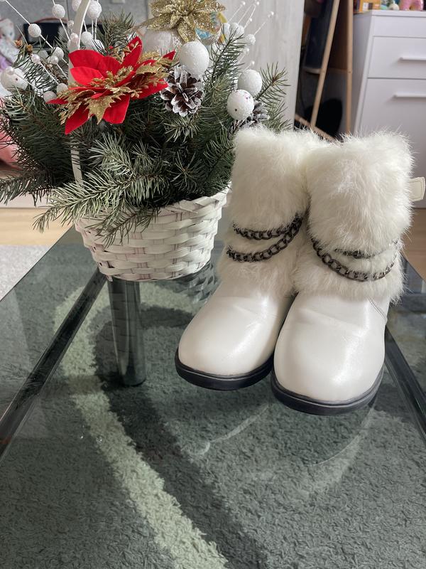 Стильні і теплі білі чобітки на зиму для дівчинки.Довжина устілки - 23 см.