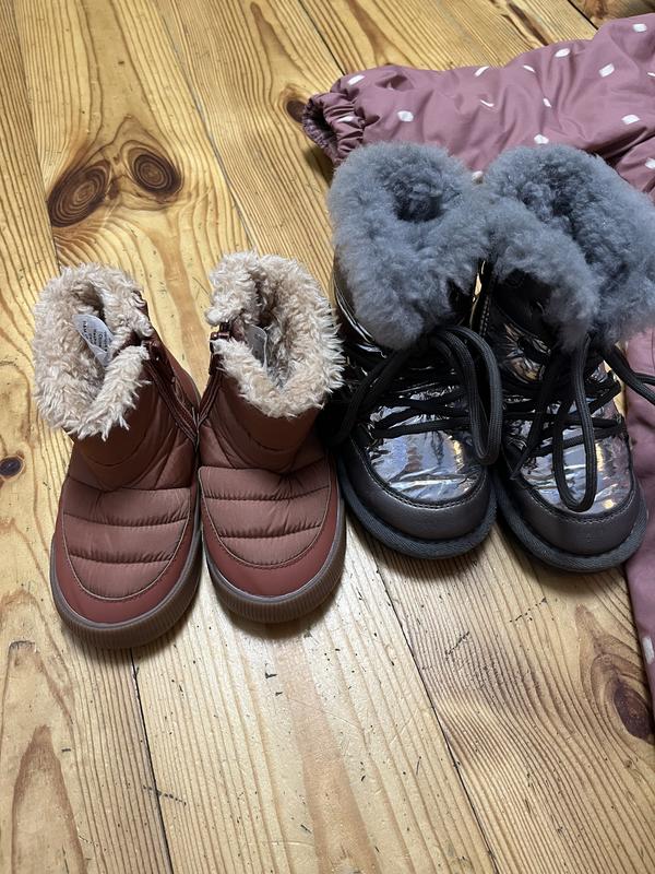 Взуття сірі 24 розмір, 14-14,5 см, ідеальний стан, теплі, не промокають, ціна 300 грн. Бордові H&M 23 розмір, устілка 14,5 см, ціна 250 грн.