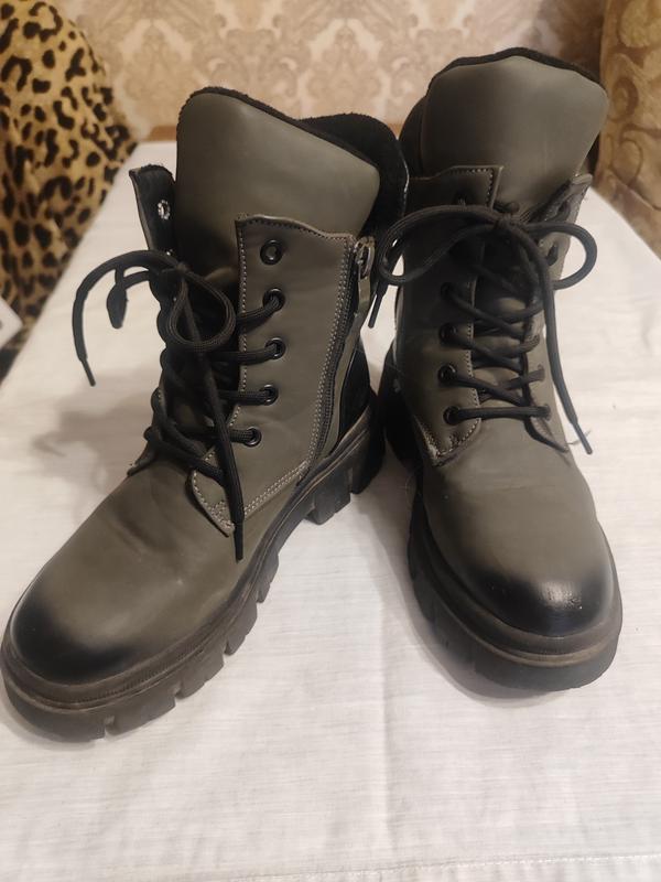 Ботиночки зимние, 35 размер, цвет хаки + элементы черного цвета.