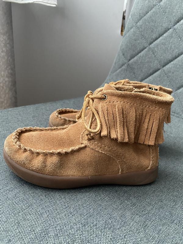 Черевички дитячі, для дівчинки, шкіряний замш, колір світло коричневого, тепла стєлька, розм 27, по стєльці 18 см
