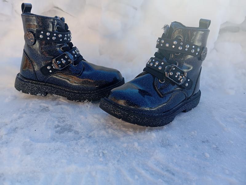 Красивые ботинки на флисе размер 26 состояние хорошее (надели 2 раза) слегка взбитые передки, но там немного без проблем можно замазать. на фото видно
