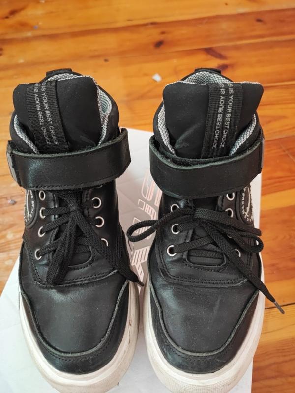 Кожаные ботинки с добротной подошвой, демисезонные, кожаные, шнуровка и липучка.