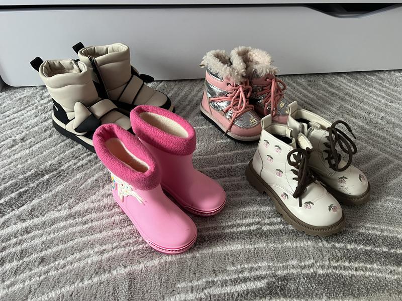 Зимові чобітки бежеві з чорним стан ідеальний розмір 29 ціна 350 грн Зимові рожеві чобітки стан на фото розмір 25 ціна 150 грн Гумачки рожеві стан дуже гарний розмір 28 ціна 150 грн Чобітки демі стан на фото розмір 28 ціна 150 грн
