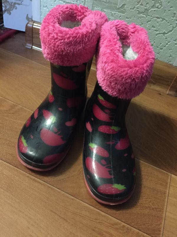 Резиновые сапоги на девочку Принт клубнички Меховой носок {съёмный} Состояние идеальное