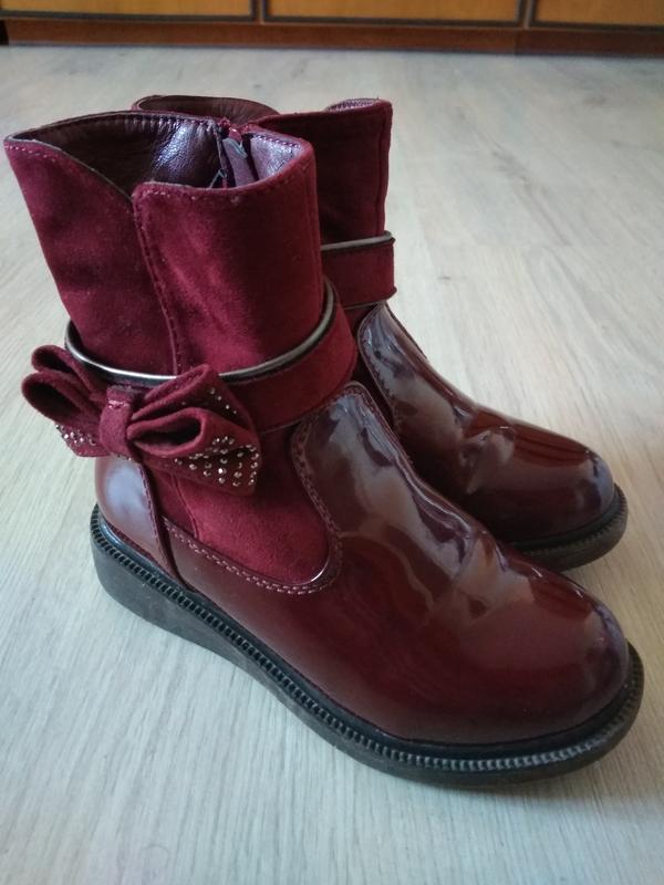 демісезонні чобітки, не шкіра, утеплені плюшем, носили одну осінь, є подряпини на носках. довжина устілки всередині 18,5см.