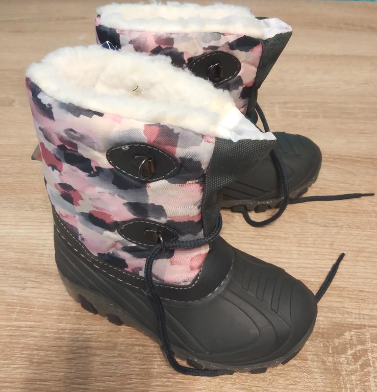 Термо ботинки для девочки немецкой фирмы Lupilu. Сзади на пятке вставка-светоотражетель. Меховая термоподкладка. Стелька фольгированная снизу для лучшего сохранения тепла, не вынимается. Подошва мигает при ходьбе только в левом ботинке, не скользит - подошва SEBS, Прорезиненный носок против промокания. Размеры в наличии: Размер 25 по стельке 16 см №4/10/2