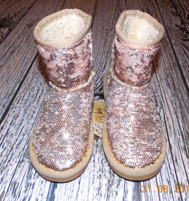 Гламурные зимние угги для девочки, (18,5 см) Б/у, состояние идеальное Длина стельки внутри-18,5 см Высота-14,5 см Отправлю в любой город
