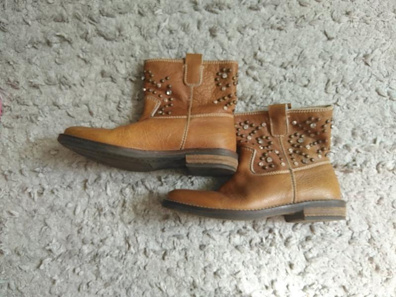 Зручні стилізовані черевички Florens, легкі і зручні, світло коричневого кольору з закльопками і камінцями.