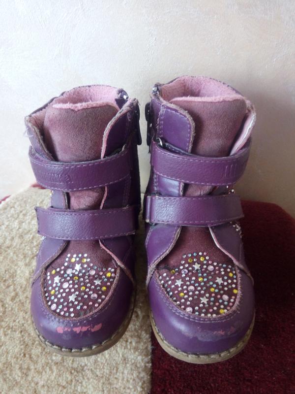 Шалунишка", демисезонные ботинки 25р. стелька 16,5см. Утеплены флисом. Замочек, липучки, всё целое, но сбиты носки. Украшены камушками.Цена 90грн