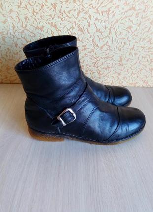 Демисезонные кожаные ботинки, 36 р. Были в носке , но состояние отличное. Мягкая плотная кожа , плотная толстая прошитая подошва , утеплены тонким искусственным мехом, износоустойчивые, удобная посадка ноги. С теплым носком подходят и для для зимы : за счет толстой подошвы и плотной кожи в них нехолодно. Емкие и мягкие внутри. Отлично подходят для дождя, слякоти, снега. Чуть удлинен и надут носок, поэтому нефотогеничны. На ноге выглядят стильно и аккуратно. В целом, в жизни интереснее , чем выглядят на фото, так как фото не отражает полностью качество и внешний вид кожи ботинок. Стелька= 23, 5 см. Полномерный детский 36 р. Больше фото по запросу.