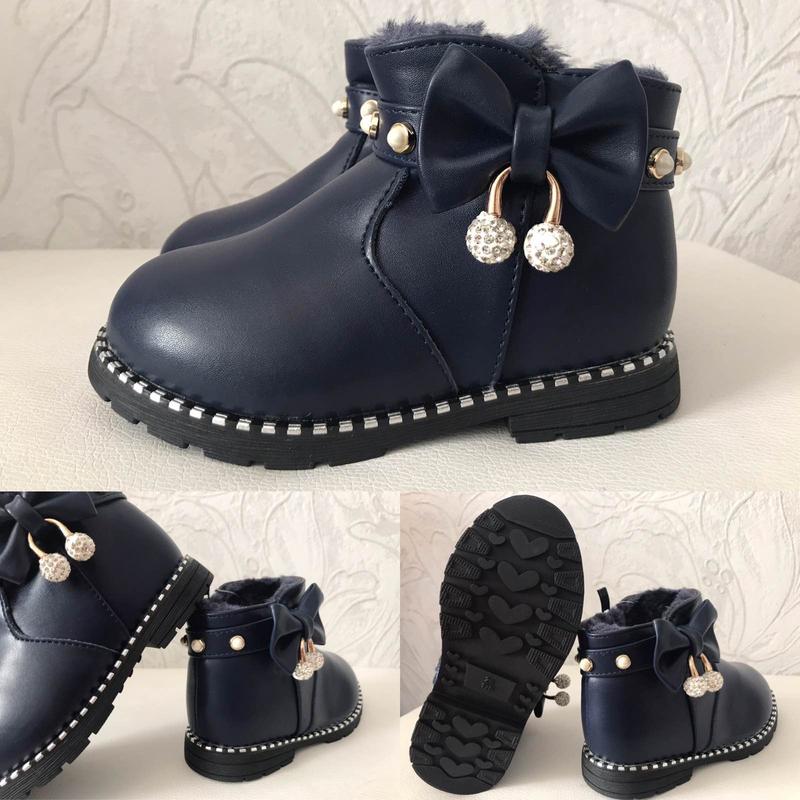 У наявності. Мега красиві. Фото без фотошопу!!!! Ботіночки зимові, темно-сині. Верх еко-шкіра, в середині штучне гарне хутро. Є супінатор. Гарна якість. Деякі розміри є по дві пари. Розмір 22-13,8; 23-14,3; 24-14,8; 25-15,3; 26-15,7. Ціна 250 грн. Наявність розмірів уточнюйте.